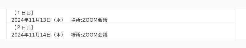 ■開催日程 (御受講の方は1日目と2日目両方をご予約下さい。)