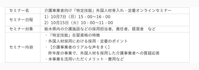 栃木県内・介護事業者向け『「特定技能」外国人材受け入れ・定着』オンラインセミナー開催