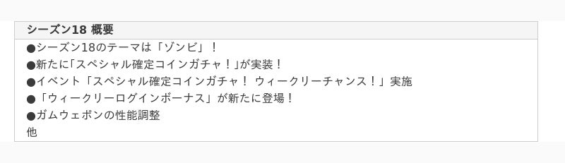 あわせて、シーズン18から「スペシャル確定コインガチャ!」が登場です。ガチャコイン100枚で1回引くことができ、スペシャルアイテムを必ず手に入れることができます。また、バトル参加などの条件達成回数に応じてガチャコインがもらえるイベント「スペシャル確定コインガチャ! ウィークリーチャンス!」も実施いたします。