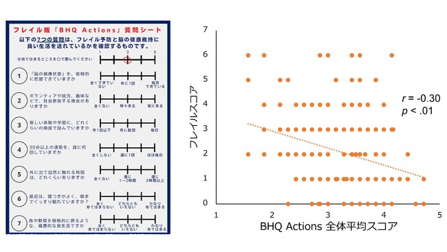 ■フレイルスコアとBHQ Actions全体平均スコアが関連、フレイル予防と脳の健康づくりの両立を示唆
