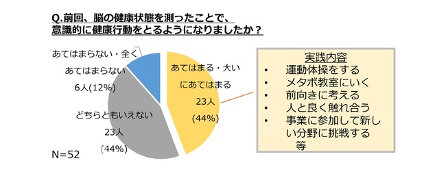 ■「脳の健康測定」が行動変容のきっかけとなった人が約半数