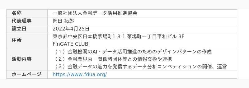 【一般社団法人金融データ活用推進協会 概要】