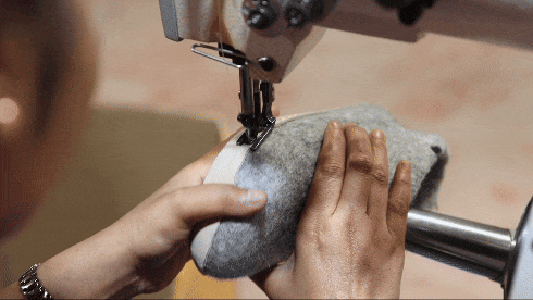 しかし、縫い目の無いルームシューズにフェルトを仕立てるには機械ではできず、1足分のフェルトを作るには大変な根気と労力が必要です。