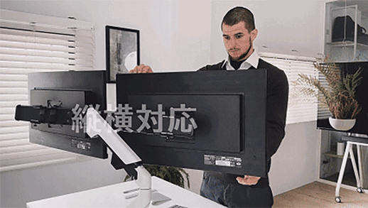 ARESパワーモニターアームなら、座っている時も立っている時も、また画面を見ながら話す時もワンタッチでディスプレイの位置を自由自在に変更可能。高さや角度を簡単に調整し、自分だけの快適な作業環境を実現できます。シーンやスタイルに合わせた理想のポジションで、仕事やエンターテインメントを最大限に楽しんでください。