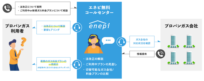 エネピでは本法改正に伴い、現在プロパンガスを利用している方、及びこれからプロパンガスの契約を検討している方が円滑に対応できるよう、このたび無料コールセンターにおける解説とマッチング支援を強化いたしました。