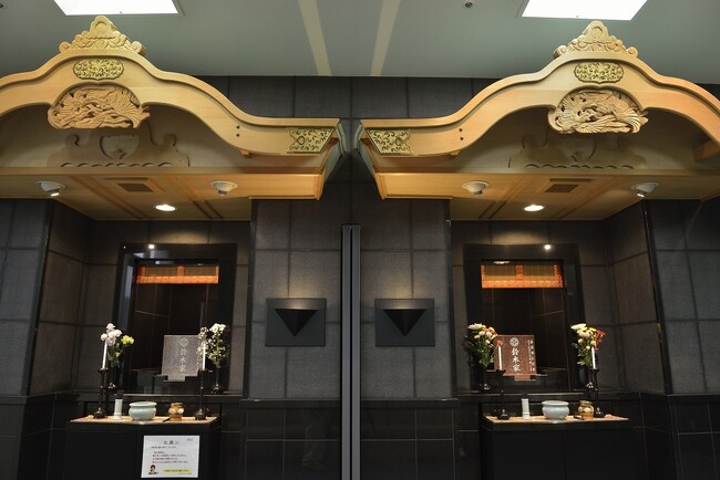 「常光閣」は、「家族葬」や「一般葬」、企業(団体)が運営する「社葬」など幅広い人数の葬儀が実施可能な施設です。葬儀式場に併設の室内墓苑(納骨堂)があり、お葬式の当日にご納骨することも可能です。
