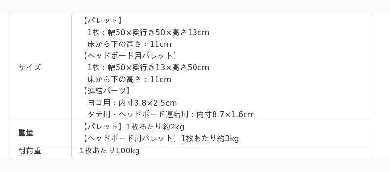 また、パレット1枚は約2~3kgなので簡単に組み替えができ、使わない時は重ねて収納することも可能です。