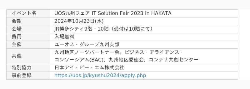 【10/23開催】UOS九州支部フェア「IT Solution Fair 2023 in HAKATA」に出展いたします