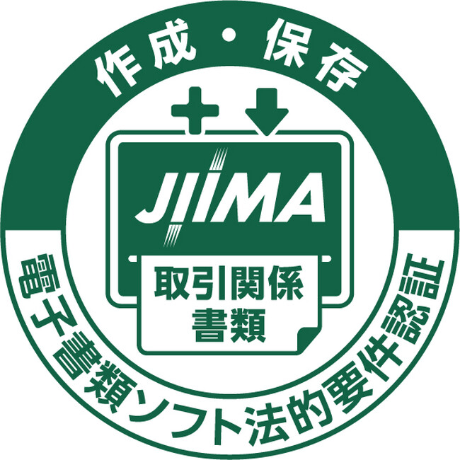 JIIMA「電子書類ソフト法的要件認証」(パターン2.取引関係書類(作成・保存) 認証番号:40180-00
