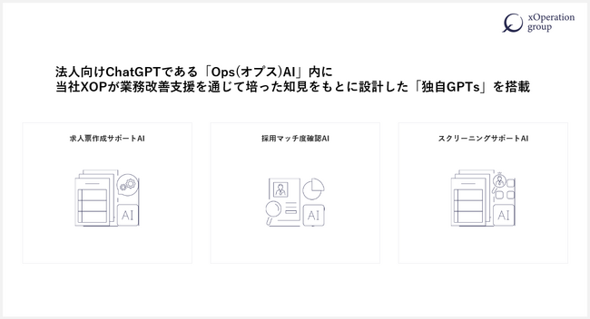 XOP、求人票作成サポートAI・採用マッチ度確認AI・スクリーニングサポートAIをリリース。法人向けChatGPT「OpsAI」内に搭載。