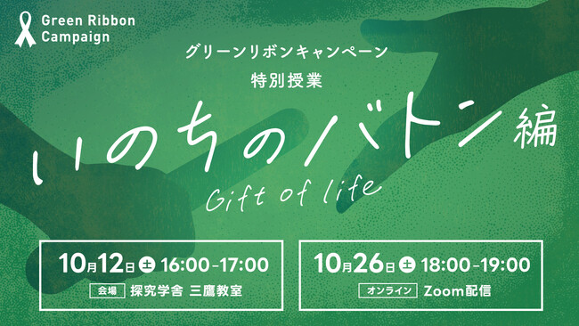 探究学舎とコラボ!グリーンリボンキャンペーン特別授業「いのちのバトン編」10月26日(土)18時より、オンラインにて開催