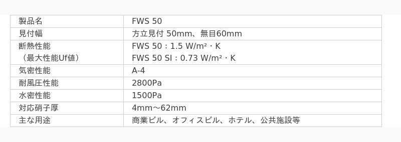 ※FWS50 SI(スーパー断熱)システムの場合、既製の商品としては最高水準のUf値(当社調べ)