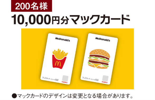 ・1,000円(税込)以上購入:抽選で200名様に「マックカード500円分×20枚(10,000円分)」