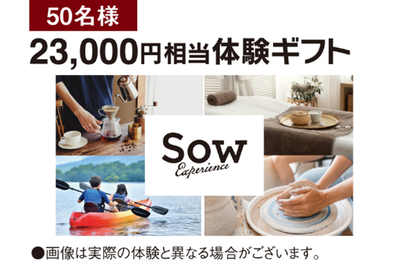 ・1,500円(税込)以上購入:抽選で50名様に「体験ギフト(ソウ・エクスペリエンス 総合版カタログギフト(RED)(23,000円分相当)」