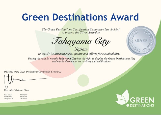 【岐阜県高山市】中部初!高山市が、世界の持続可能な観光地アワード「グリーン・デスティネーションズ・アワード」にてシルバーアワードを受賞しました