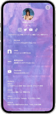 (2)リットリンクプラスの機能「ライブ背景」または「オープニングカバー」を使用し、ご自身のlit.linkに設定