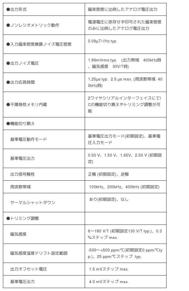(※3) 業界トップクラスの低ノイズ性能:プログラマブルリニアホールICとして。周波数10kHz条件での値
