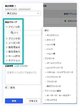 出荷の目的に応じて、在庫移動すべき商品群を任意で絞り込むことが可能です。