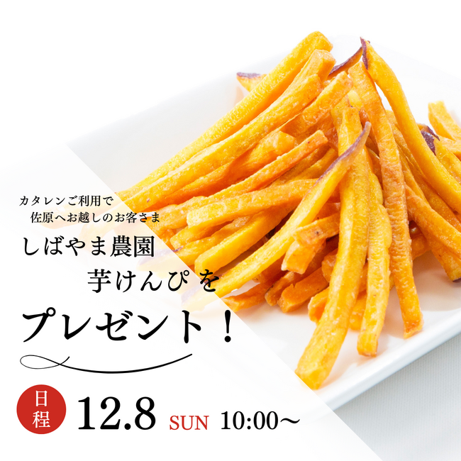 それに合わせ「カタレン」を利用しカシマへ向かう途中で千葉県佐原へお越しのお客さまへ、芋けんぴをプレゼント!