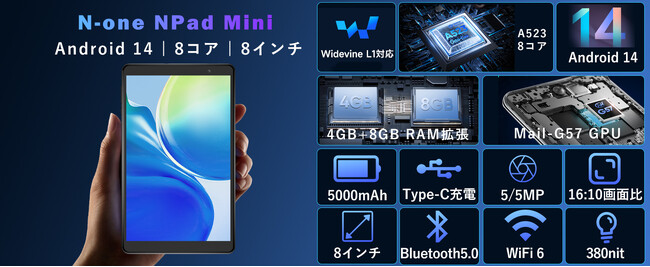 Npad Miniは、8インチディスプレイと8コアプロセッサ「A523」を搭載し、マルチタスク処理が可能でスムーズな使用体験を提供します。