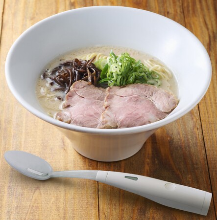 今回、お客様に楽しく・おいしい減塩の食体験をお届けしたいという2社の思いが合致し、「塩分の取り過ぎを気にせずおいしくラーメンを食べたい」というお客様の健康ニーズに応えるため、「エレキソルト スプーン」を用いて、楽しく・おいしく食べていただける減塩ラーメンを共同で開発しました。
