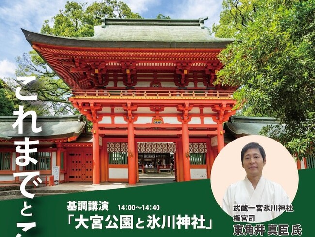 武蔵一宮氷川神社権宮司である 東角井真臣 氏 をお招きし、大宮公園と氷川神社との関係性や歴史についてお話をしていただきます。