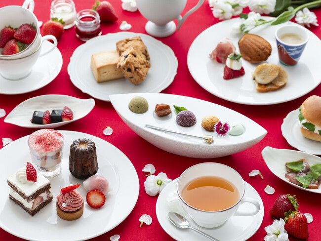 旬のいちごを様々な味わいでお楽しみいただけるように仕上げました。セイボリーでは大人に仕上げた「生ハム 苺」や「苺のカプレーゼ 紫蘇」、苺ドレッシングがアクセントになった鴨のローストを。スイーツは「苺とシナモンのマドレーヌ」「バジルダマンドのチョコレートタルト」、「苺とバルサミコのブルーベリーゼリー」などをご用意します。