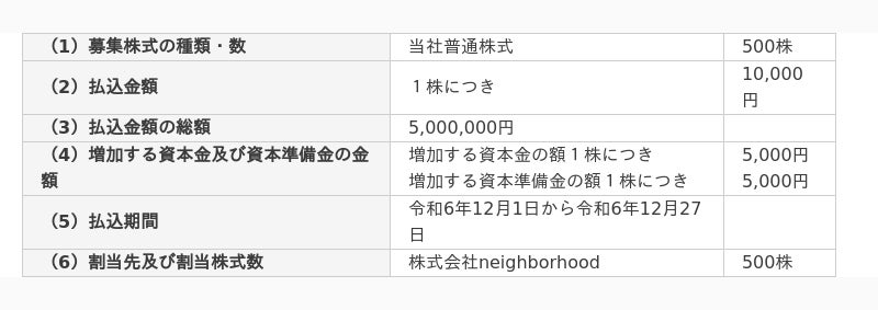 株式会社neighborhood第三者割当増資払込完了のお知らせ
