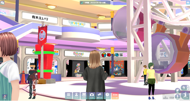 まだ地下フロアなど準備中の場所もありますが、館内の観覧車に乗ってモール内を見て回ることができ、バーチャル空間ならではのギミックが楽しめます