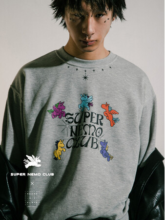 ルーズすぎないシルエットで着丈は少し短めなデザインとなっています。フェード加工することでヴィンテージ感のある風合いに仕上げています。フロントにはシグネチャーとなっているネモのプリント。首後ろには羽の刺繍を施しています。グラフィックはSENSE OF PLACEオリジナルの書き下ろしデザインです。