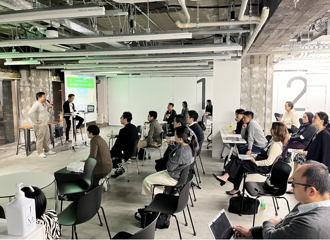 イベントの第1部では、3か月間にわたる「デジタルな振る舞いキャンプEssential」プログラムの集大成となる最終ピッチ会が行われました。参加者は、AIやノーコードツールを活用して取り組んだ業務改善プロジェクトを発表しました。発表されたプロジェクトの中には、生産現場での業務効率を向上させる仕組みや、地元商店街の活性化を目的としたアプリ、高齢者と若者をつなぐマッチングアプリ、ペットの薬管理を効率化するアプリなど、バラエティに富んだ内容が含まれていました。参加者の実体験を元にしたこれらの取り組みは、多くの聴衆に共感と驚きを与えました。