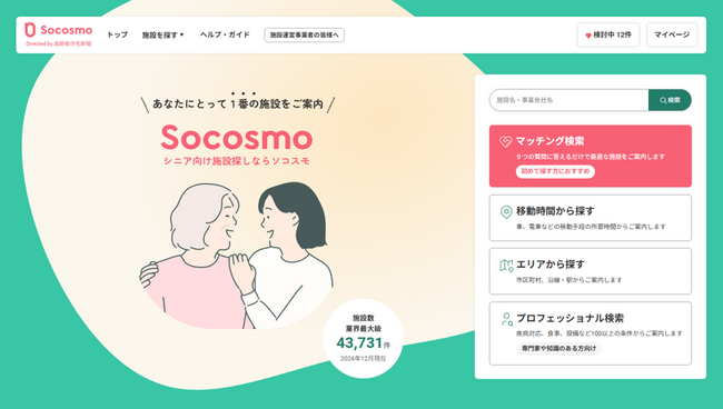 「ソコスモ」老人ホームマッチングサイトがリニューアルオープン