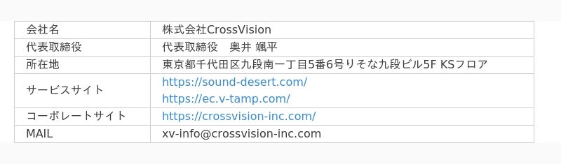※ 「Sound Desert」は、株式会社NTTドコモの商標です。株式会社CrossVisionはドコモからの利用許可に基づき使用しています。