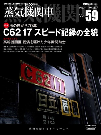 あの日から70年 C62 17スピード記録の全貌/履歴簿に見る機関車の一生C62 17/C62 17時速129キロ関係者インタビュー/鉄の馬と兵ども 戦渦を駆けた少年機関助士/山口線2024 ~D51とともに~/元・乗務員が語る「やまぐち」と蒸気機関車の運転/58654号機、人吉市へ郷帰り/公園機関車を撮る 台湾彰化機務段CK12・板橋区D51 513/新聞社が見た鉄道 産業用機関車の活躍/見蒸必撮 あの熱き日 D51 498は高一区へ D51 1002は八王子区へ/機関車を読む8800形8801号機