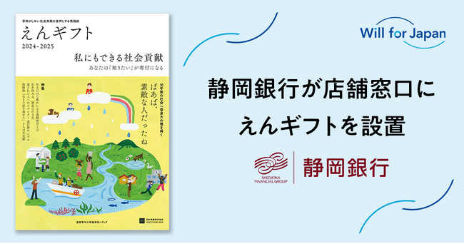 一般社団法人日本承継寄付協会 / Will for Japan(所在地:東京都文京区、代表理事:三浦美樹 以下「当協会」)は、株式会社 静岡銀行(以下、静岡銀行)の全店舗(出張所を除く)に「えんギフト」を設置いただくと共に、現在展開中の「第3回フリーウィルズキャンペーン」の告知についてもご協力いただくことになりました。これにより、静岡県内を中心に遺贈寄付の認知向上を目指します。