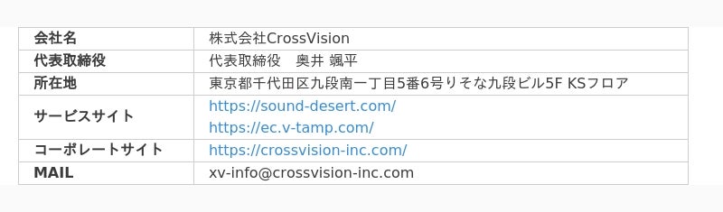 ※ 「Sound Desert」は、株式会社NTTドコモの商標です。株式会社CrossVisionはドコモからの利用許可に基づき使用しています。