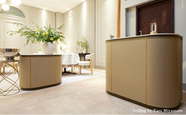 演台やテーブルの腰面(曲面含む)に使用されています。アップボーンレザーは、環境への配慮とデザイン性を両立した、革新的な素材です。ぜひ、映画「グランメゾン★パリ」でその魅力をご体感ください。