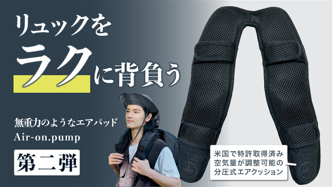 利用者の約90%が重さの軽減を実感!リュックの重さを体感40%軽減する肩パッド【Air-on.Pump】、12月26日(木)よりMakuakeにて先行販売開始!
