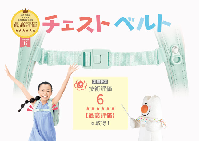ふわりぃランドセルの特徴的な「レール式チェストベルト」が特許庁における実用新案技術評価6(最高評価)を取得!