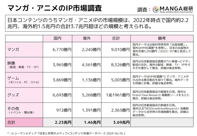 2022年のマンガ・アニメIPのグローバル市場規模は約3.7兆円超 MANGA総研調査