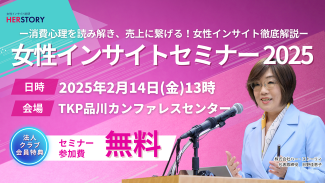 女性インサイト総研を有する株式会社ハー・ストーリィ(所在地: 東京都港区, 代表者: 日野佳恵子)は、2025年2月14日(金)に「女性インサイトセミナー2025」を開催いたします。