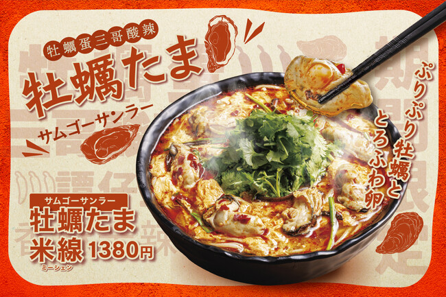 株式会社譚仔三哥日本(本社:東京都渋谷区、代表取締役 劉達民)が展開する、食の感動体験を追求し、「一度食べたら忘れられないウマさ。」を提供する香港発のライスヌードル店「譚仔三哥(タムジャイサムゴー)」(以下、譚仔三哥)は、酸味とスパイスの効いたサムゴーサンラースープに旨味が詰まった牡蠣と卵を贅沢に使用した「牡蠣たま米線」を2025年1月21日(火)より期間限定で販売します。