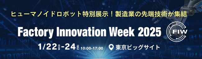 本日1月22日(水)から3日間、東京ビッグサイトにて、製造業のDX、ロボット、脱炭素、人手不足対策など1800社が出展する展示会「Factory Innovation Week 2025」を開催いたします。