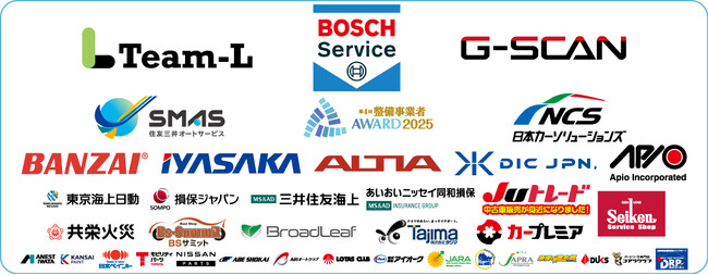 ボッシュカーサービス/株式会社インターサポート/株式会社チームエル/住友三井オートサービス株式会社/日本カーソリューションズ株式会社/株式会社バンザイ/株式会社イヤサカ/株式会社アルティア/ディーアイシージャパン株式会社/アピオ株式会社/東京海上日動火災保険株式会社/損害保険ジャパン株式会社/あいおいニッセイ同和損害保険株式会社/共栄火災海上保険株式会社/三井住友海上火災保険株式会社/BSサミット事業協同組合/株式会社ブロードリーフ/株式会社タジマ/株式会社JUコーポレーション/明治産業株式会社/プレミアグループ株式会社/アネスト岩田株式会社/株式会社オリコオートリース/関西ペイント株式会社/ダックス株式会社/株式会社ジャプラ/トヨタモビリティパーツ株式会社/日産自動車株式会社/日本ペイント株式会社/株式会社速太郎本部/株式会社阿部商会/AIRオートクラブ/全日本ロータス同友会/株式会社アイオーク/株式会社JARA/株式会社ビッグウェーブ/DRPネットワーク株式会社 (順不同)
