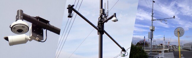 4月からこれまでの約9カ月間で、交差点全体を俯瞰する全方位AIネットワークカメラ、ならびに、特定方向を注視するハウジング一体AIネットワークカメラそれぞれで捉えた車両や歩行者の映像を、新開発のAIアプリケーションで総合的にデータ提供・分析することで、車両や歩行者の移動軌跡や速度変化を把握できることが確認できています。