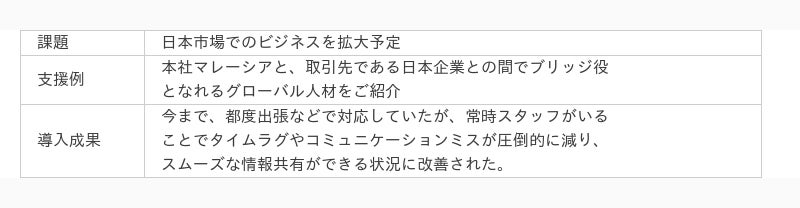 グローバル展開企業さま(BPO企業/本社マレーシア)
