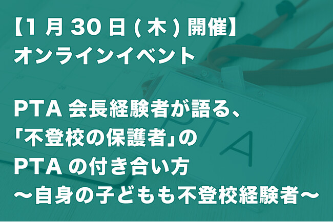 【1月30日(木)開催!】オンラインイベント「PTA会長経験者が語る、『不登校の保護者』のPTAの付き合い方~自身の子どもも不登校経験者」