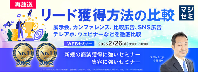 マジセミ株式会社は「【再放送】リード獲得方法の比較」というテーマのウェビナーを開催します。