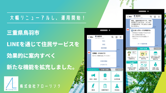 この度、株式会社アローリンク(本社:兵庫県神戸市中央区雲井通4-2-2 マークラー神戸ビル4階、代表取締役:蓬莱和真)は、三重県鳥羽市(市長:中村 欣一郎)がLINE公式アカウント拡張ツールLinyを活用し、市内の子育て世帯に限定した子育て応援カードのデジタル化に加え、住民向けコンテンツを新たに拡充し運用を開始しました。