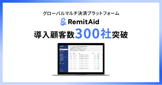 「世界に挑む日本を支える」をビジョンに掲げ、海外企業との取引を簡単にするグローバルマルチ決済プラットフォーム「RemitAid(レミットエイド)」 (https://remitaid.io/)を提供する株式会社RemitAid(本社:東京都渋谷区、代表取締役:小川裕大、以下当社)は、サービス導入社数が300社を突破いたしました。